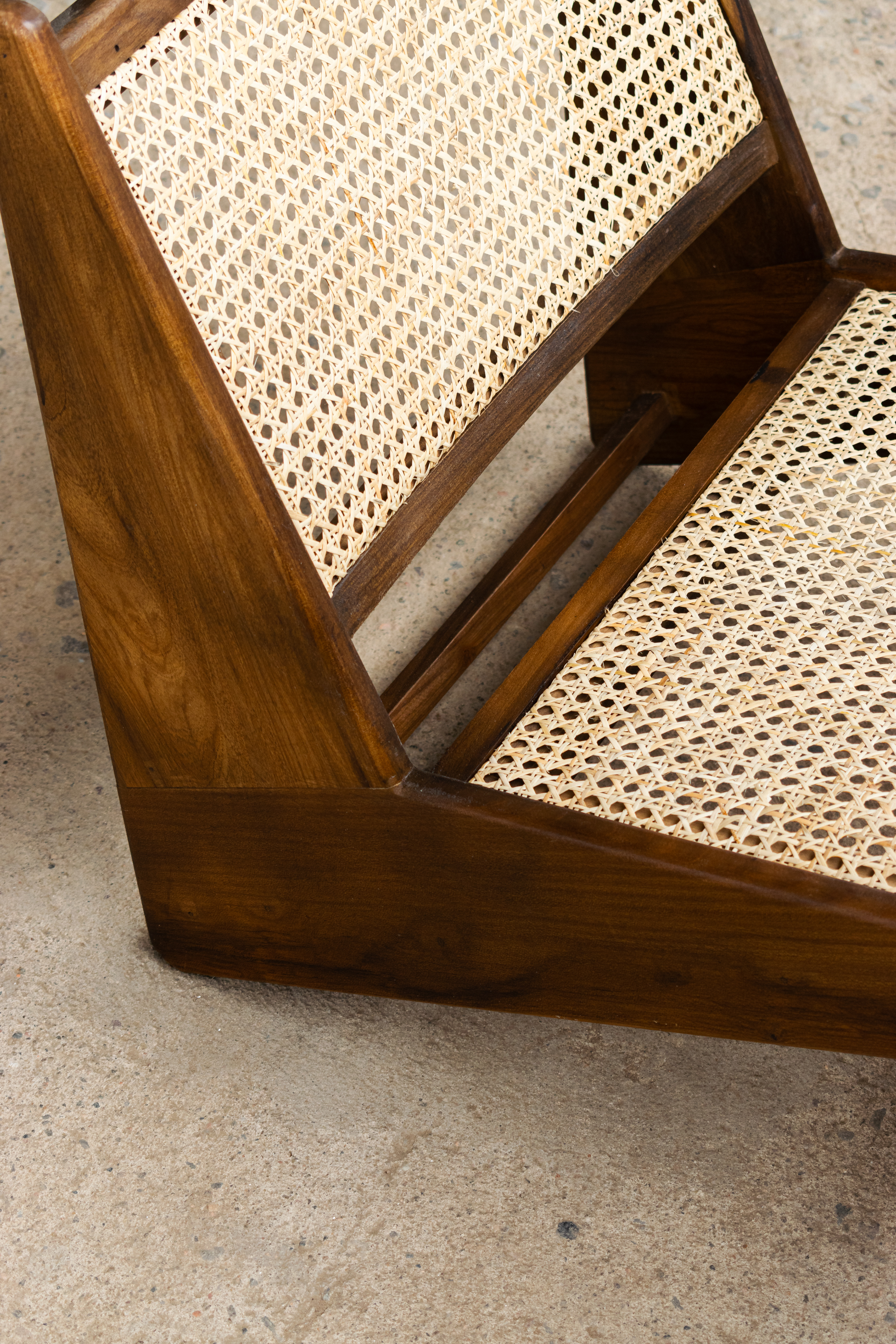 Caracterizada por su estructura en ángulo y asientos bajos, perfecta para un ambiente relajado y sofisticado.